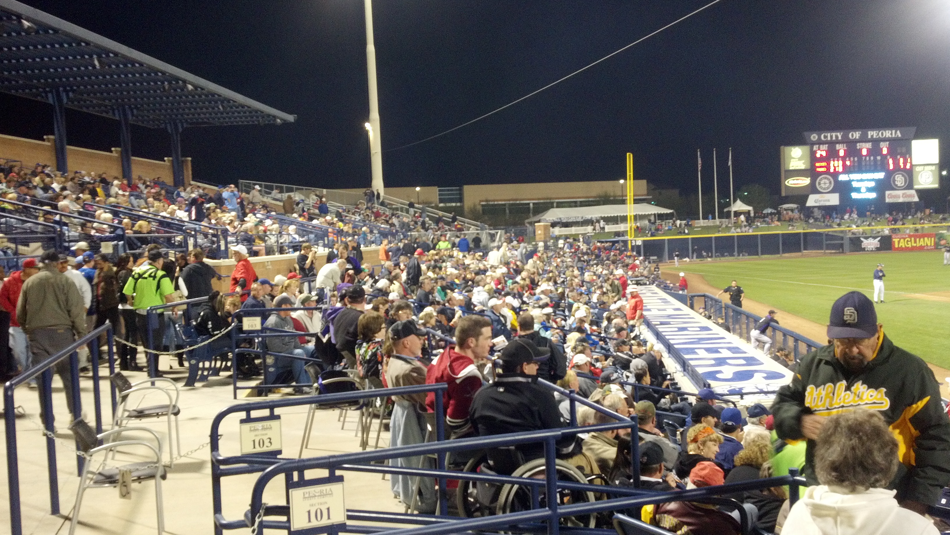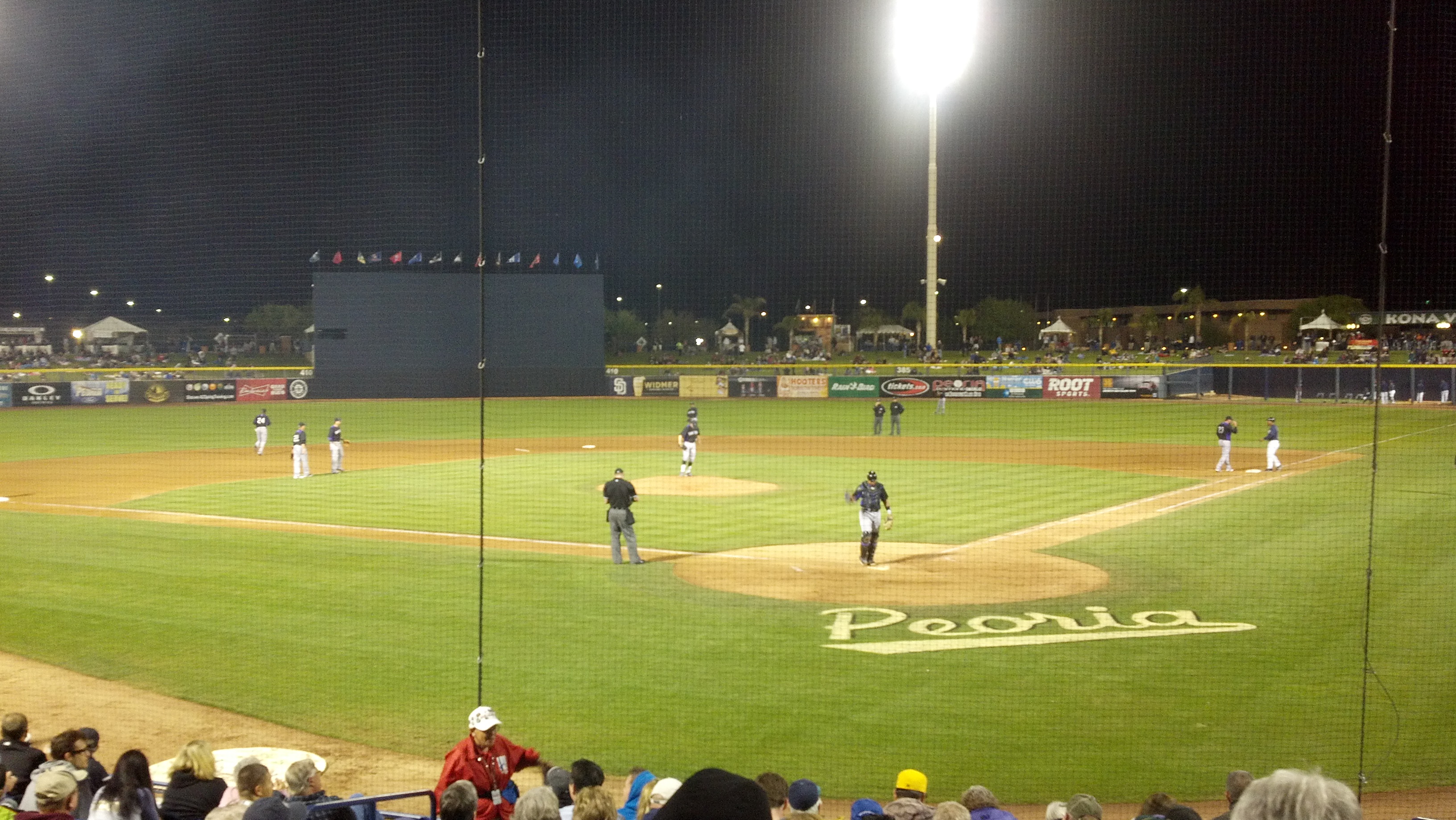 Grabbed a bite to eat and noticed the Padres (they share the complex and stadium with the Mariners) were playing at home. They were taking on the Colorado Rockies and like the baseball nut I am, decided to walk over and watch a little bit of it. The Peoria Stadium is not as nice as I was expecting, but bigger than I expected. The average age in the crowd was around 65. The Rockies had more fans than the Padres ironically.