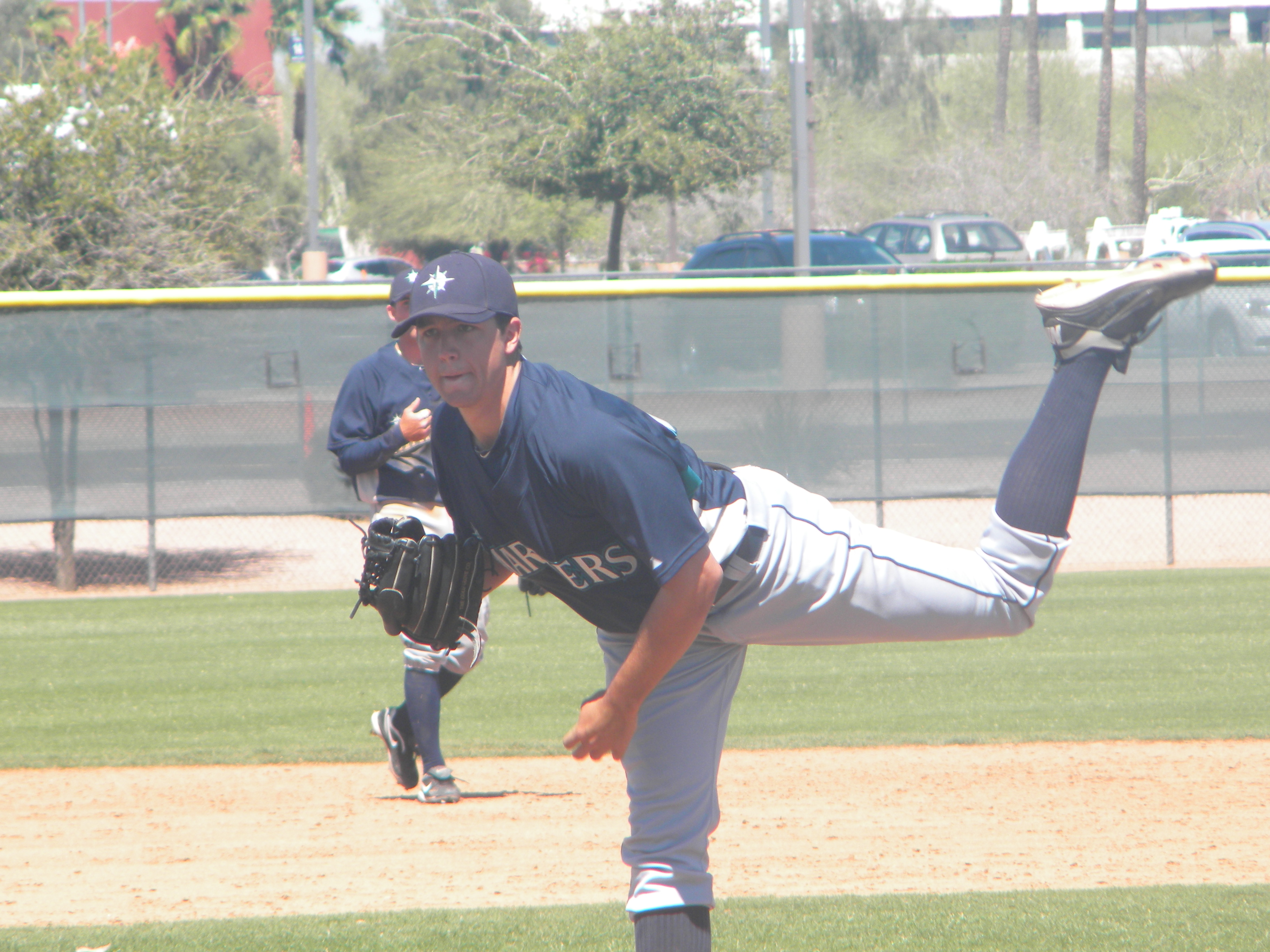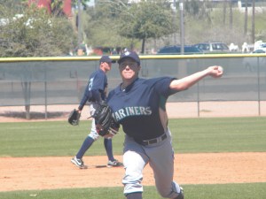 - Danny Hultzen was shaky in his first inning, allowed a double to Nick Franklin and then a 2-run home run to Francisco Martinez. Martinez had a pair of knocks in the game and so did Franklin. Hultzen settled down and struck out 7 in his 4 inning outing, walking none. Hultzen sat around the 94 mph mark and was told he hit 97 a few times. Wow…Impressed with his change up. He fanned Trayvon Robinson on 3 pitches and 2 were change ups. On the fastball Robinson cracked his bat and was not too happy about it. Impressive. Never got rattled.