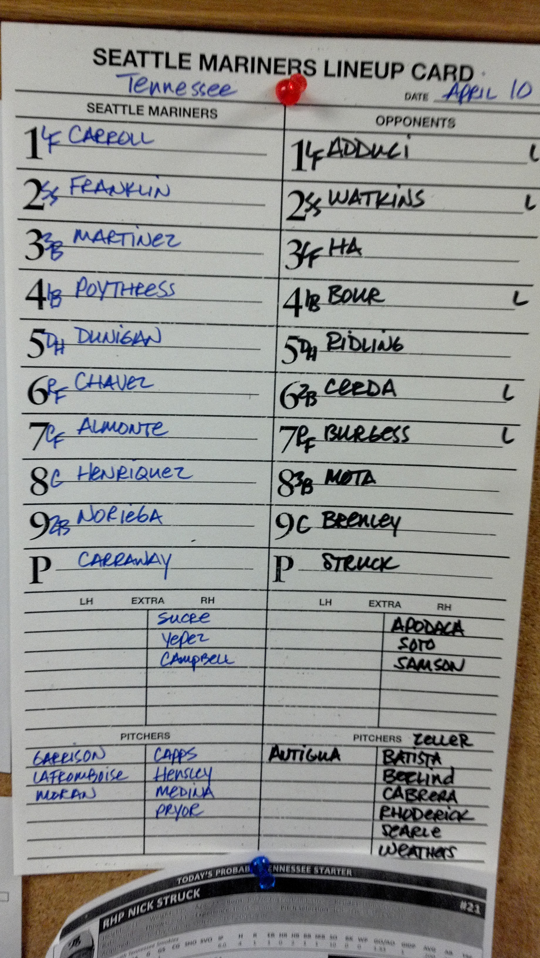 GENERALS RECAP: – Taijuan Walker struck out eight batters over five innings and won his Double-A debut as Jackson defeated Birmingham Monday at Pringles Park, 3-2. Carter Capps and Stephen Pryor provided four scoreless innings of relief behind Walker to preserve the victory. The Generals took four of five from the Barons to open the season 4-1. Nick Franklin upped his hitting streak to five games with a double on Monday.