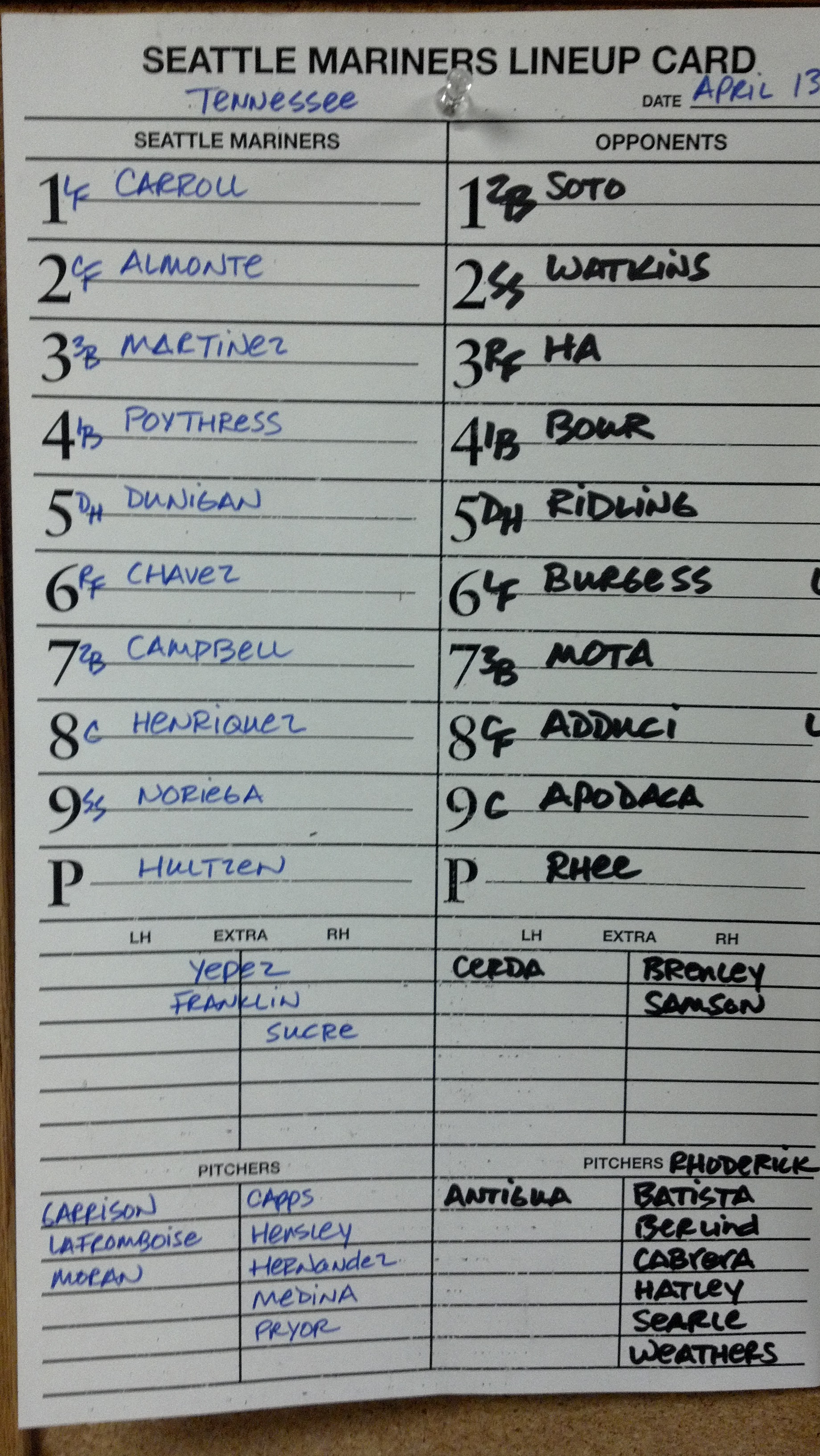 Pitching Match-up: LHP Danny Hultzen (0-1, 11.25) vs. RHP Dae-Eun Rhee (0-0, 4.76)