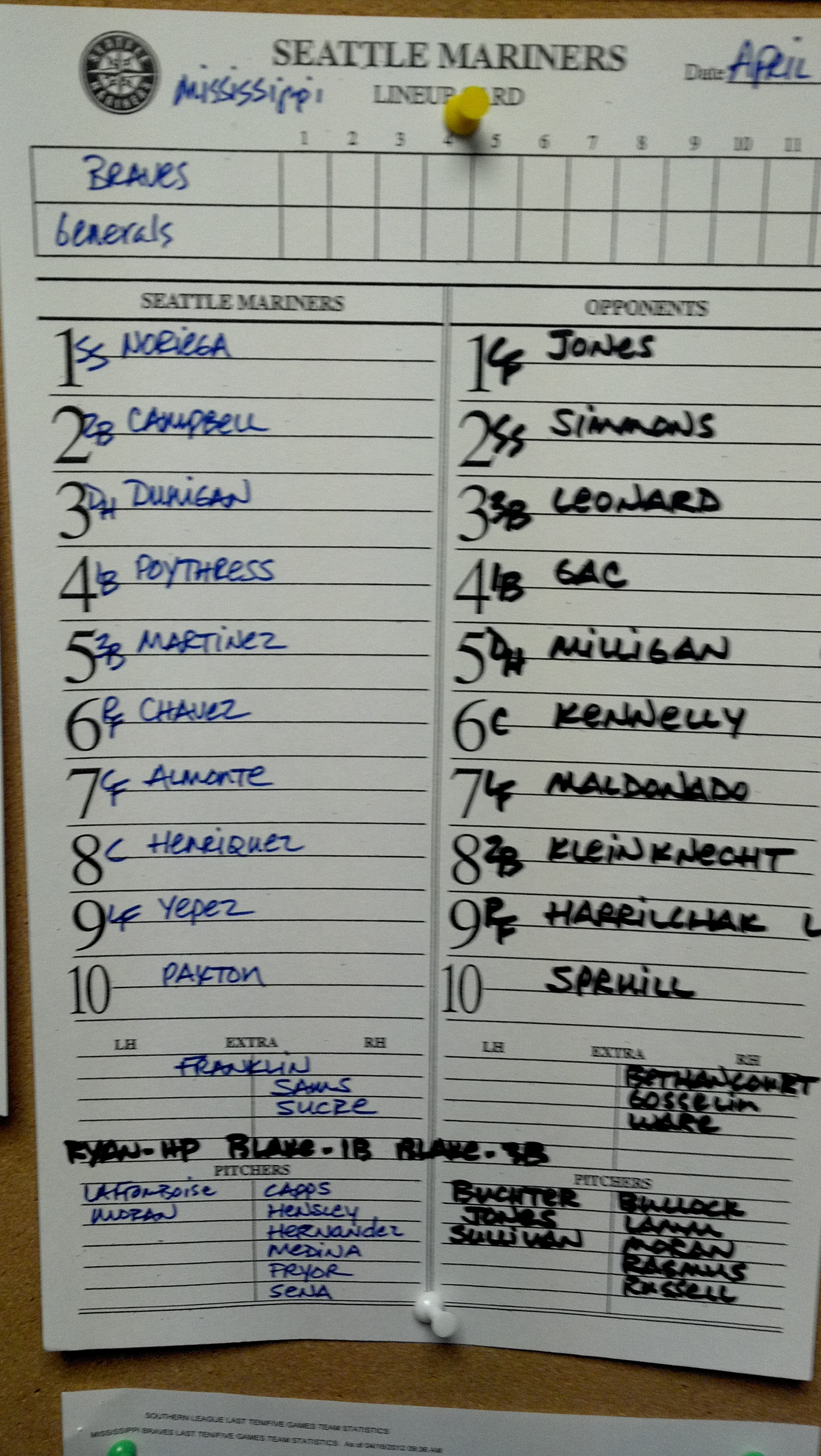 Today’s Matchup: Jackson Generals (Mariners) (7-4) vs. Mississippi Braves (Braves) (4-7)