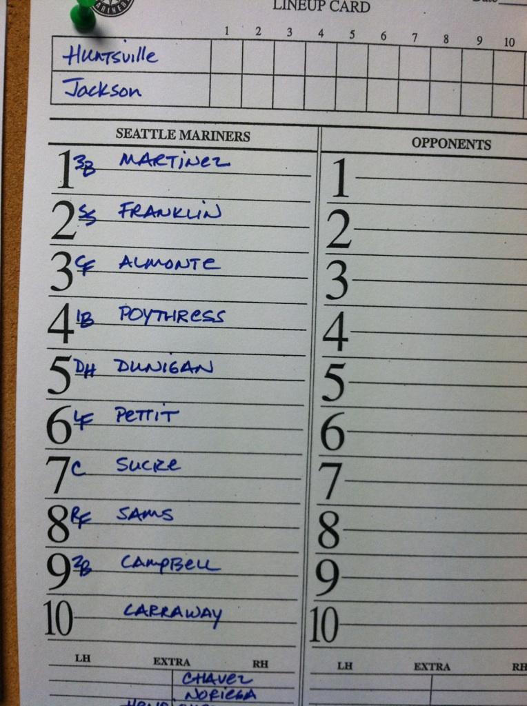 GENERALS RECAP: Despite out hitting Pensacola, the Generals got shutout for the 2nd time this season 0-4 on Saturday night. Jackson also had their 5-series win streak snapped in the rubber match of the series. Starter Danny Hultzen recorded the loss alloweing 2 run on 1 hit, while walking a seasonhigh 7 batters and striking out 4 in 4.1 innings. RH Stephen Pryor struck out all 3 batters faced in the 9th inning to extend his scoreless inning streak to 15.0 innings. 2B Nick Franklin (2×4, 2B) and RF Johermyn Chavez (2×4, 2B) each recorded multi-hit games.