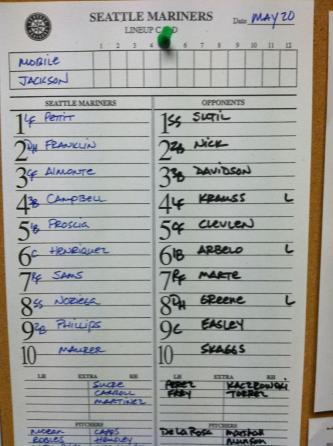 JUST HOW GOOD IS HE?: Lefty starter Danny Hultzen has allowed only 16 hits and 4 earned runs over his last 7 starts, a span of 40 2/3 innings pitched. Hultzen is now the active leader in the Southern League with a 1.81 ERA. After last night’s game he lowered his league best opponents batting average figure to an amazing .133. He ranks 2nd in the league in WHIP at 0.99 and is now T-3rd with 4 wins.