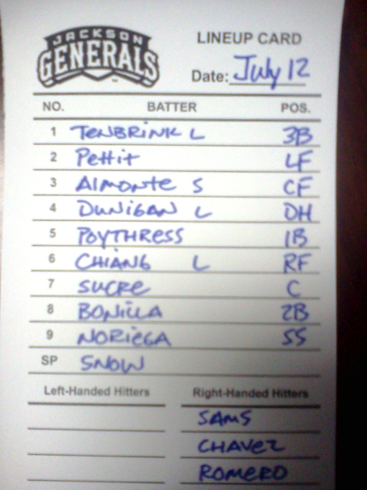 Today’s Matchup: Jackson Generals (SEA) (12-8, 54-36 vs. Mississippi Braves (ATL) (8-12, 38-52)