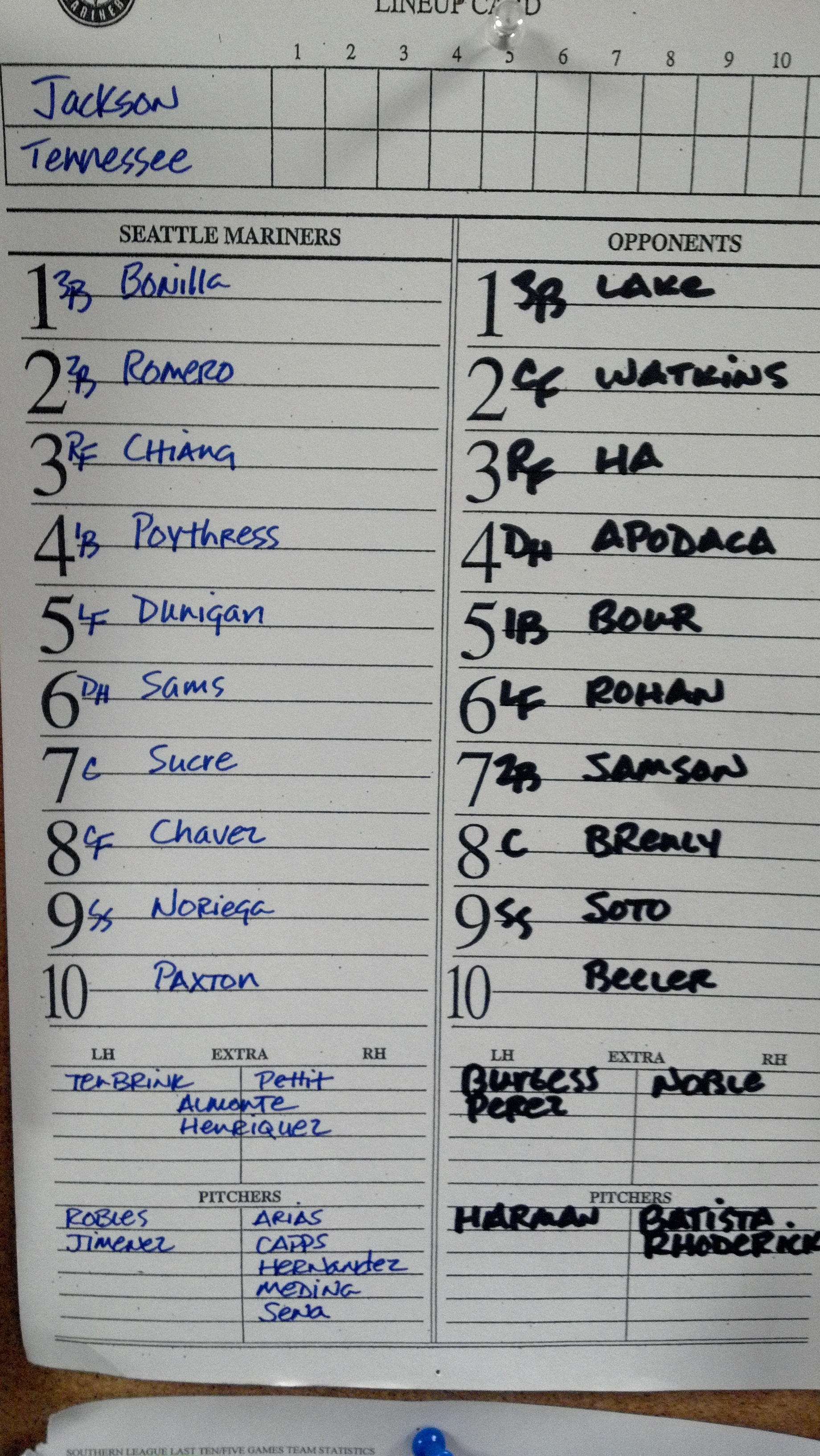 Today’s Matchup: Jackson Generals (SEA) (13-9, 55-37 at Tennessee Smokies (CHC) (12-11, 47-46)
