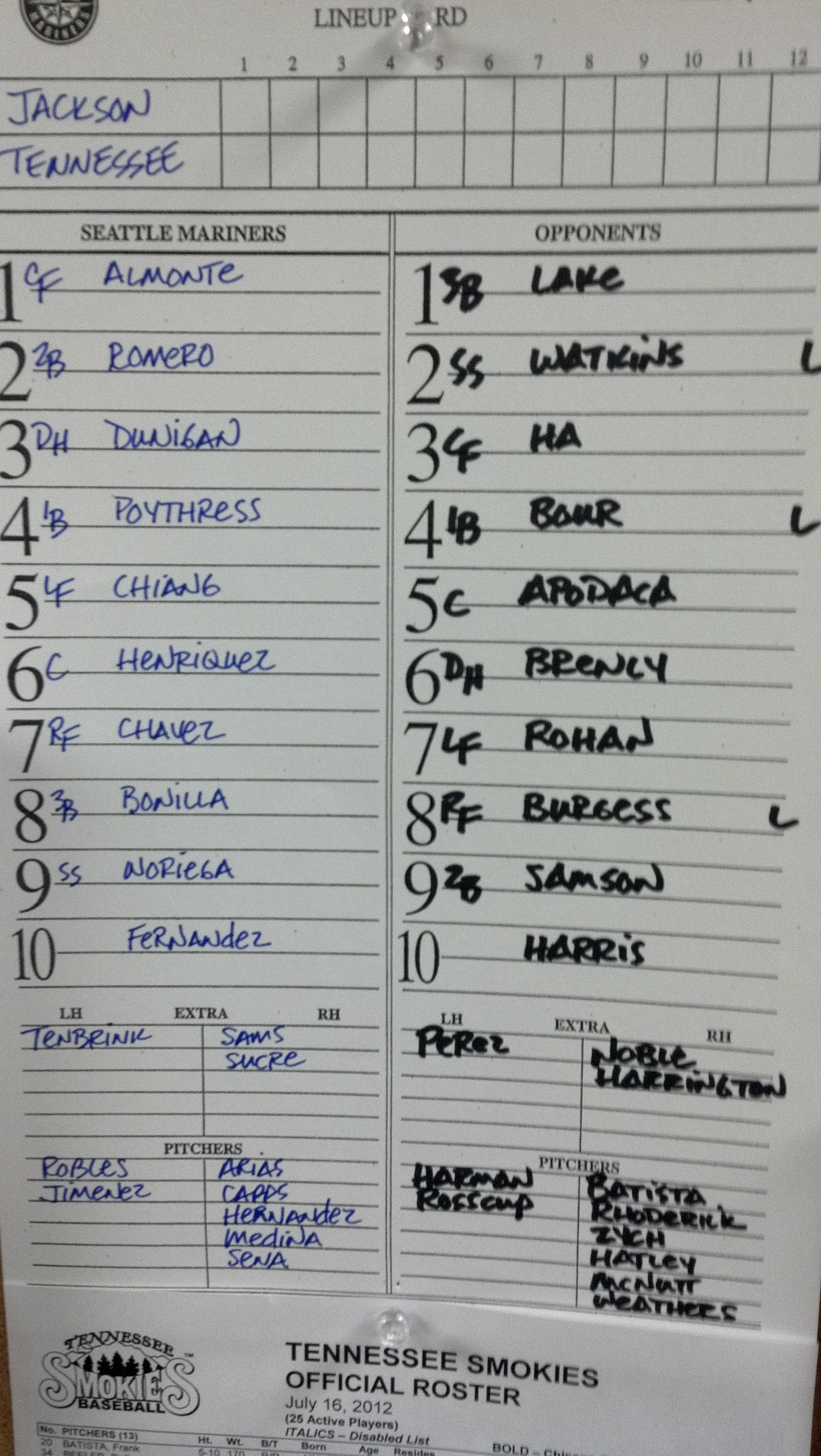 Today’s Matchup: Jackson Generals (SEA) (14-9, 56-37 at Tennessee Smokies (CHC) (12-12, 47-47)
