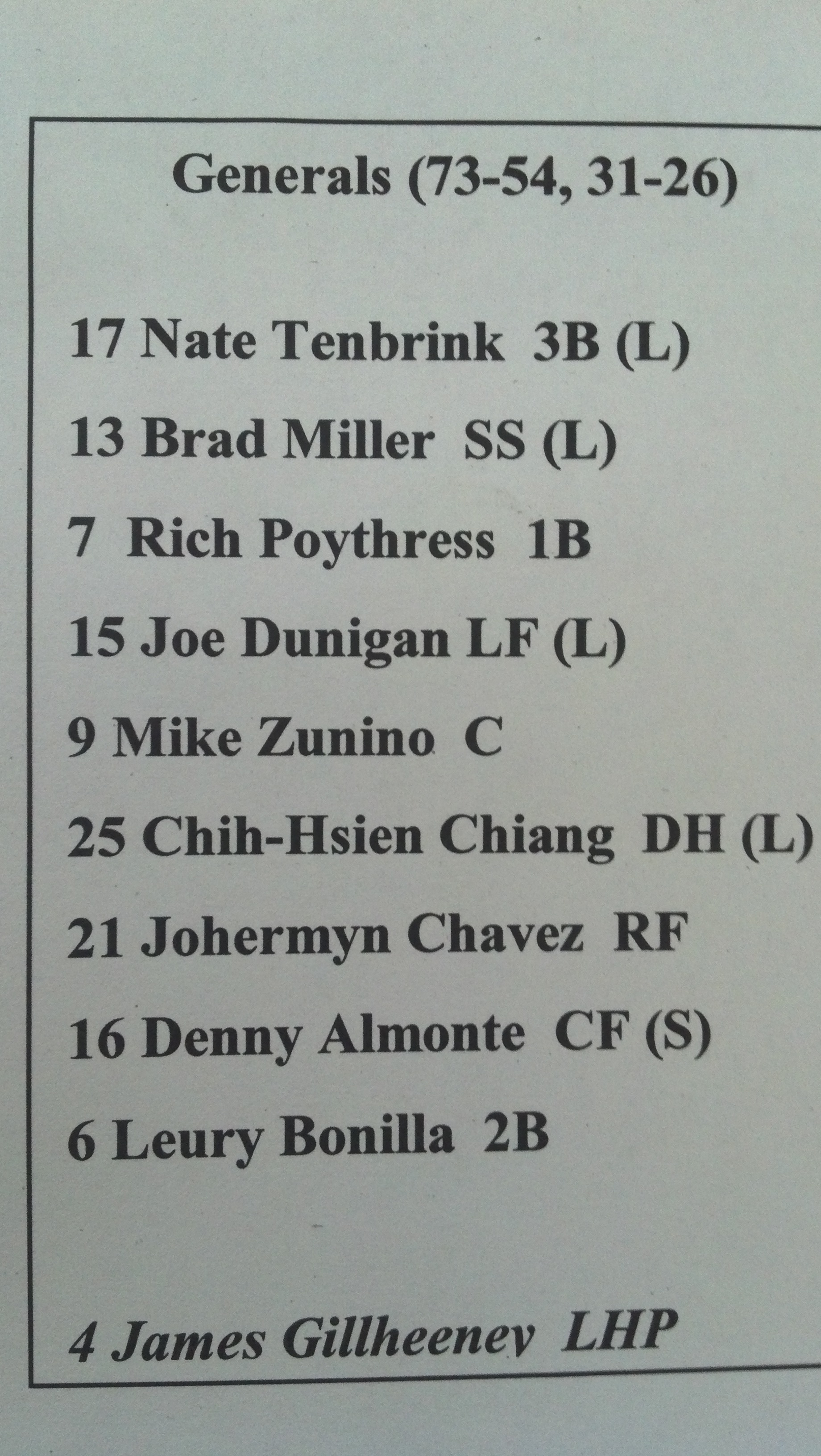 RECORD SETTING PACE: The Generals 73 wins is the fastest to that mark since 2005. The Generals are 4 games off the pace off of the 2005 Diamond Jaxx that won 83 games and 5 off the pace of the 1999 Diamond Jaxx that won a record 84 games. Last season the Generals won just 68 games and the most won since becoming at Mariners affiliate in 2006 was 75 that season.