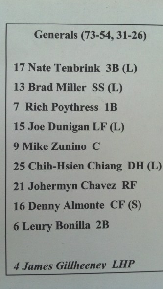 Generals Roster | 2012 Regular Season Statistics | SL Standings | SL Leaders | Generals Promotions | MLB Game Notes | Mariners Roster | MLB Standings