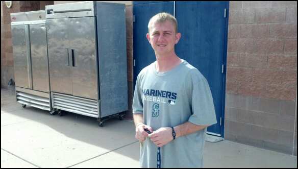 Jackson home clubhouse manager C.J. Fedewa is part of the clubhouse crew here in Arizona. He works 16 hour days and stopped for a second to pose for a picture.