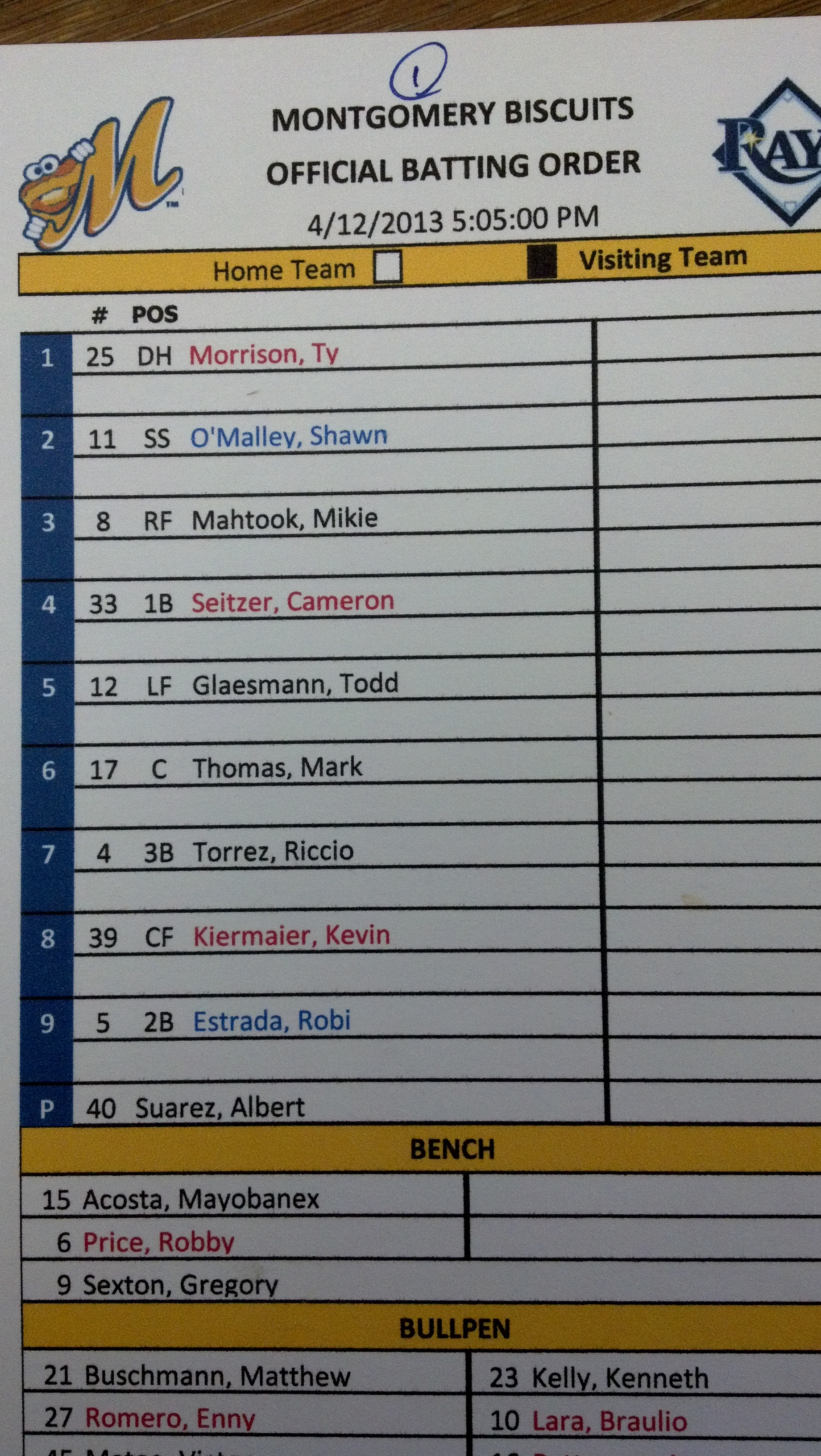 WHO’S HOT: OF Julio Morban has recorded multi-hit games in 3 of the first 5 games, batting .563 (9×16) with 3 runs scored, 3 doubles, 1 home run and 3 RBI. INF Brad Miller has hit safely in 4 of the first 6 games this season, batting .375 (9×24) with 3 runs scored, 1 double, 1 triple, 1 home run and 1 RBI.