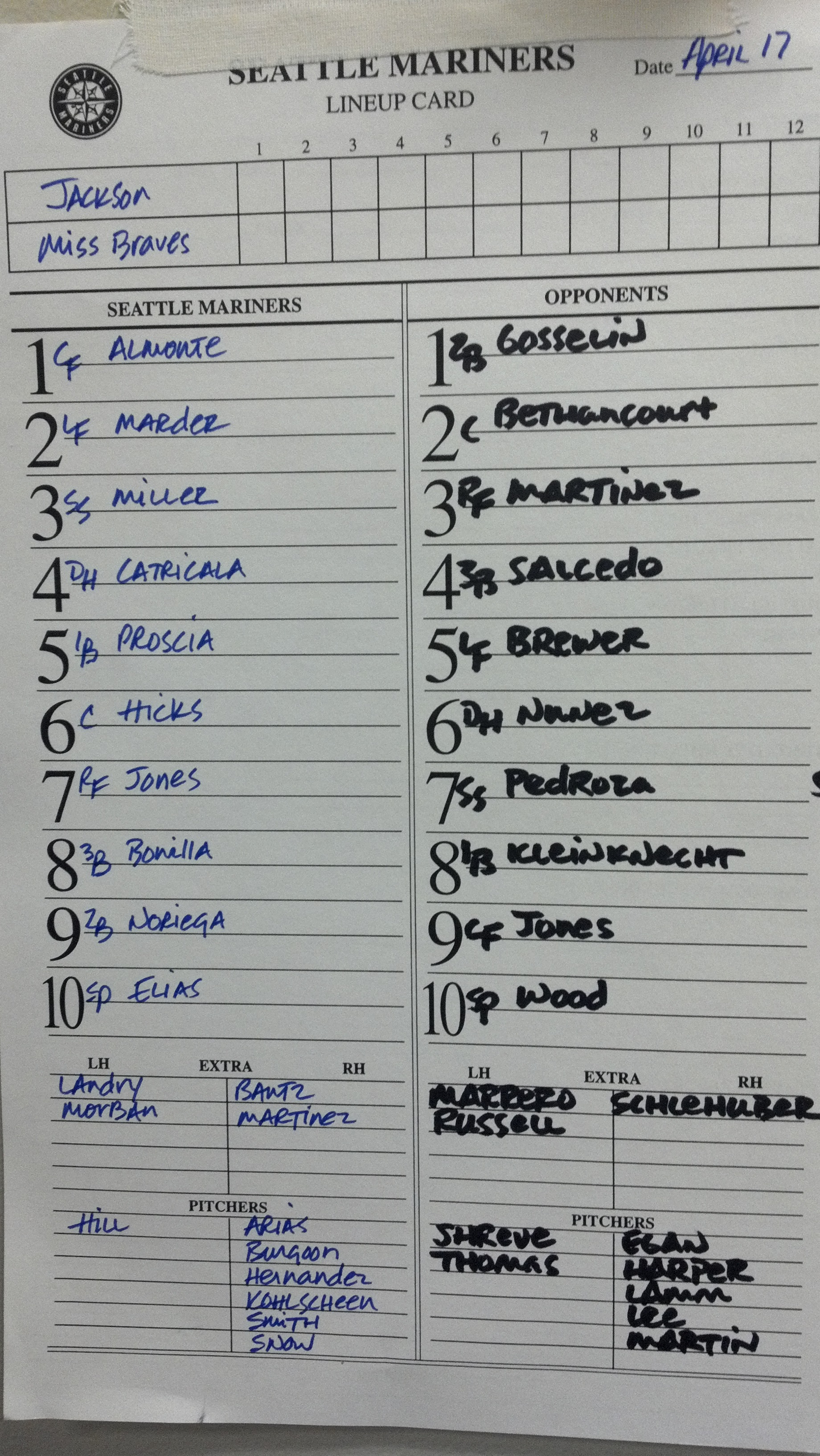 Game #13: Jackson Generals (SEA) (6-5) at Mississippi Braves (ATL) (3-8)