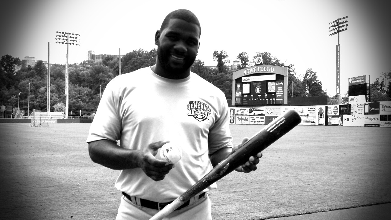 Generals OF Abraham Almonte showing off the bat and ball used to finish up his cycle on Saturday in Chattanooga.