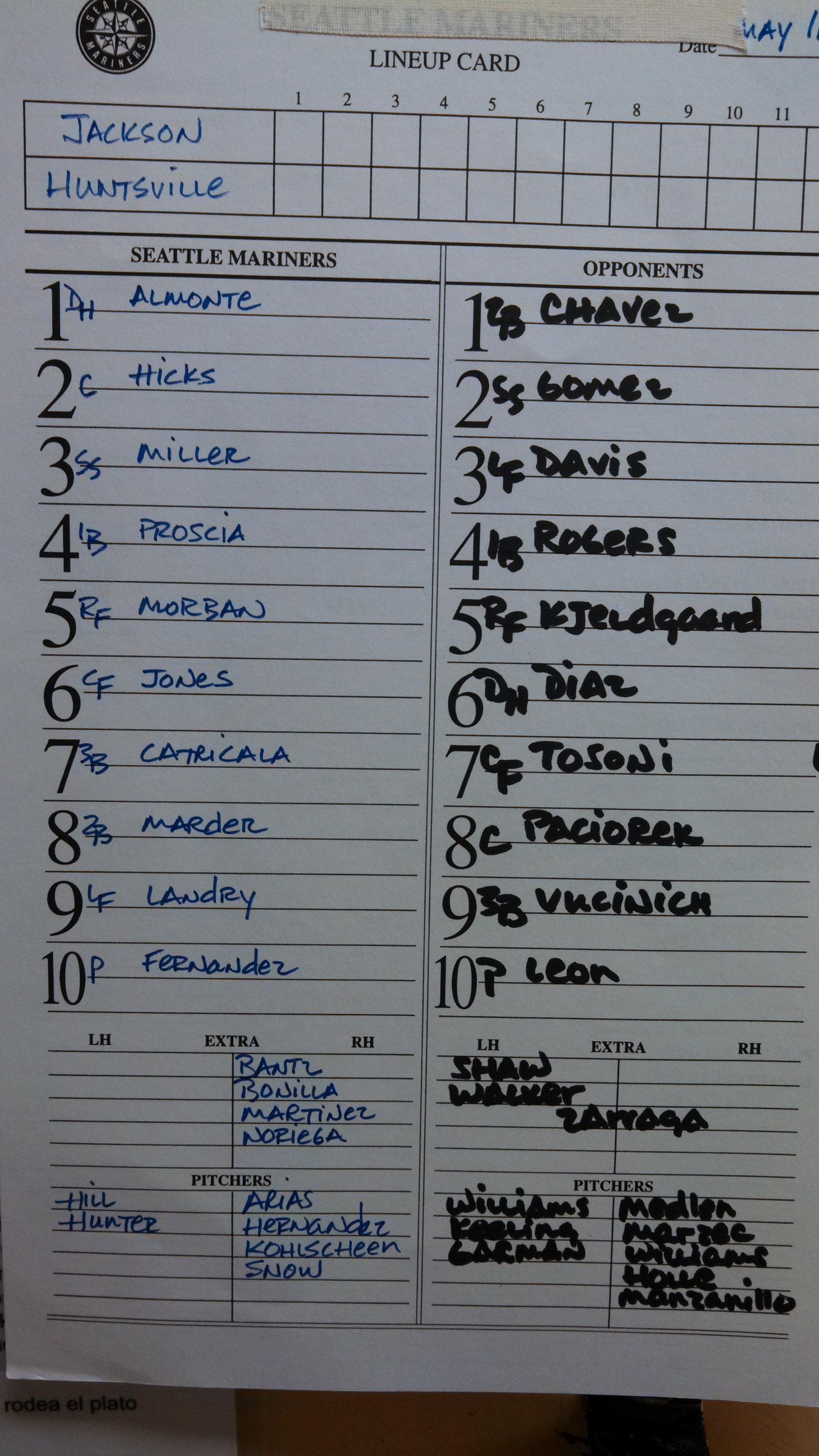Game #33: Jackson Generals (SEA) (14-18) at Huntsville Stars (MIL) (13-21)