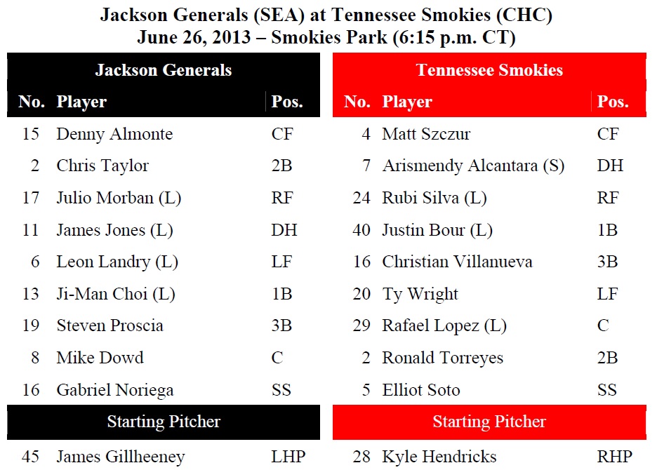 Game #74: Jackson Generals (SEA) (3-4, 32-41) at Tennessee Smokies (CHC) (4-3, 38-38)
