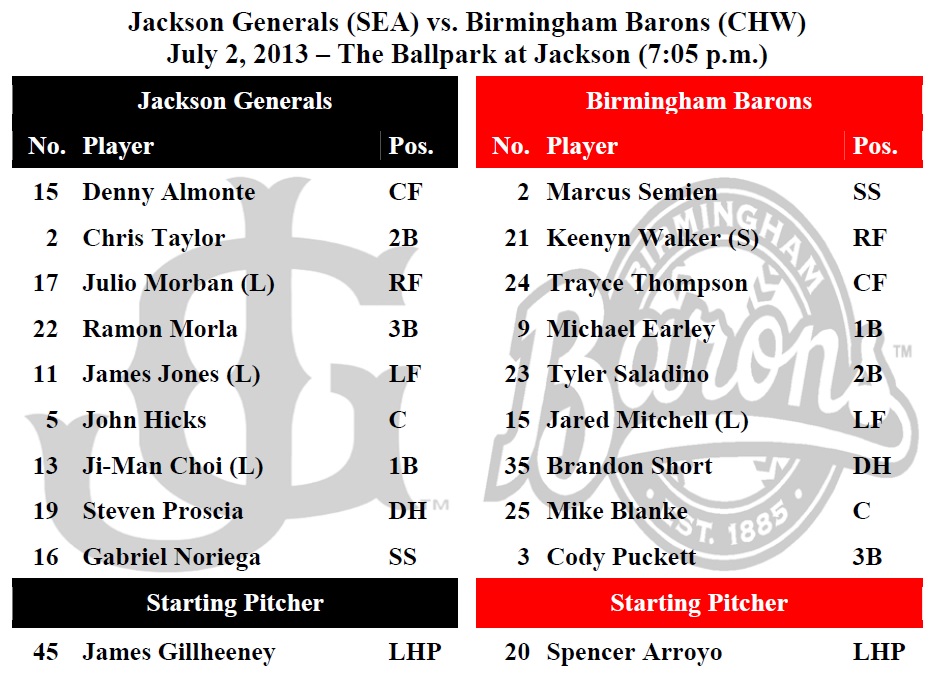 • HEY NOW, YOU’RE AN ALL-STAR: OF Julio Morban, OF James Jones and LHP Roenis Elias will represent Jackson on the North Division roster for the 2013 Southern League All-Star Game, which is scheduled for July 17 at Bragan Field at Baseball Grounds of Jacksonville. RHP Taijuan Walker was also selected to the roster, but is unable to play due to his recent promotion to AAA Tacoma.