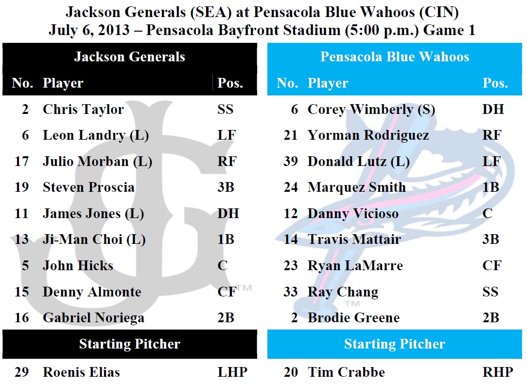 Game #81, 82: Jackson Generals (6-8, 35-45) at Pensacola Blue Wahoos (9-7, 34-51)