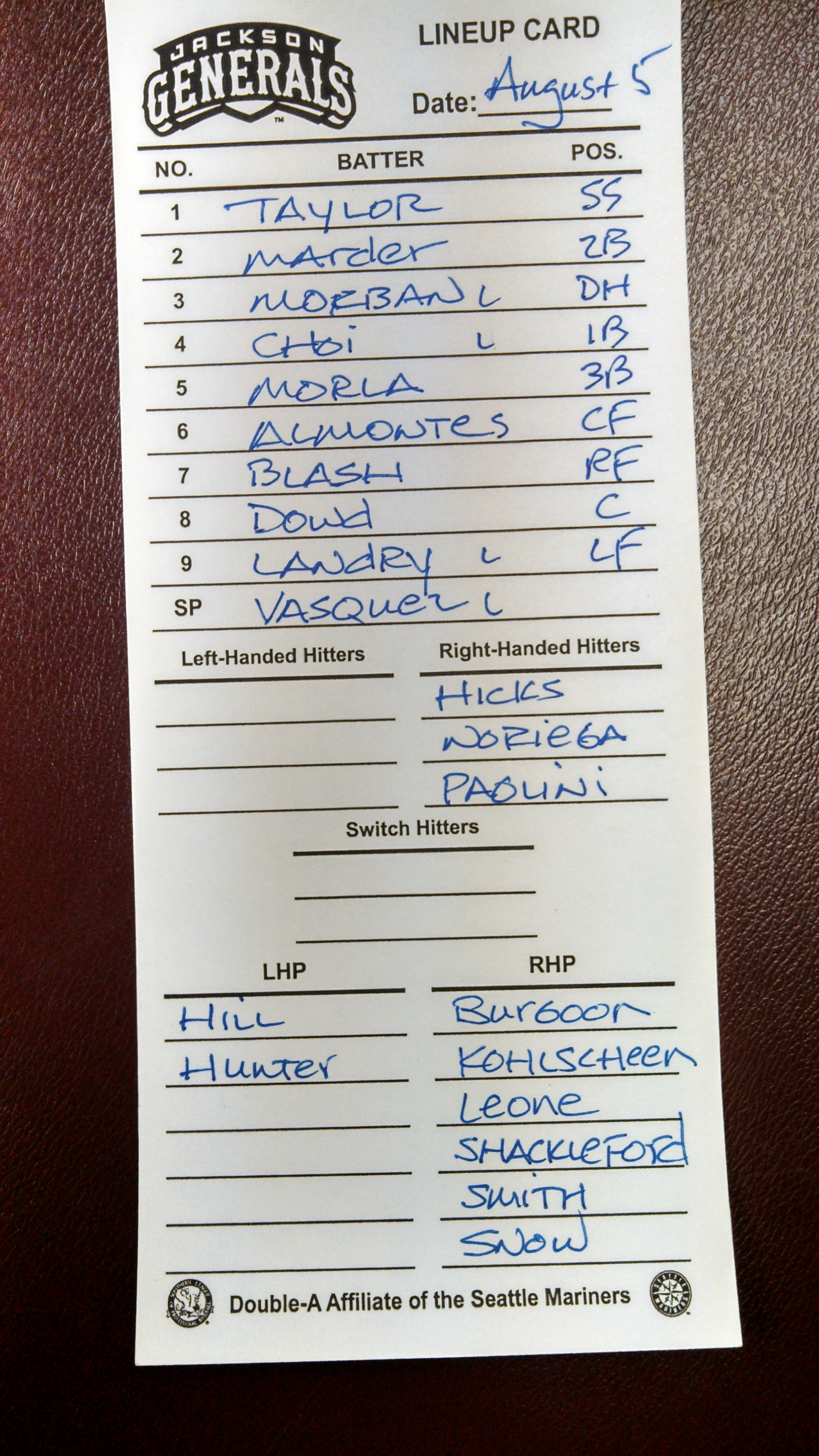 • SEATTLE GENERALS:…there are currently (7) players on the Seattle Mariners active roster that were members of the 2012 Jackson Generals (RHP Brandon Maurer, INF Nick Franklin, INF Brad Miller C Jesus Sucre (15-day DL), C Mike Zunino (15-day DL) and RHP Yoervis Medina, RHP Stephen Pryor (60-day DL). In total, (9) 2012 Generals have made their MLB debuts and (4) 2013 Generals. (C Brandon Bantz, RHP Hector Noesi, INF Brad Miller, RHP Erasmo Ramirez).