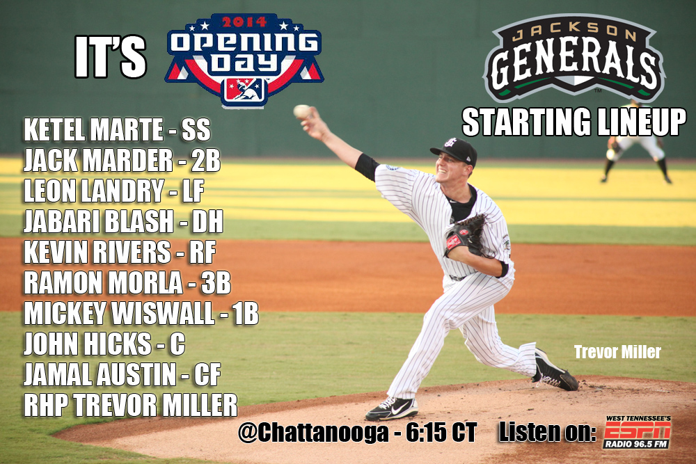 Game #1: Jackson Generals (0-0) at Chattanooga Lookouts (0-0) | 6:15 pm CT | AT&T Field