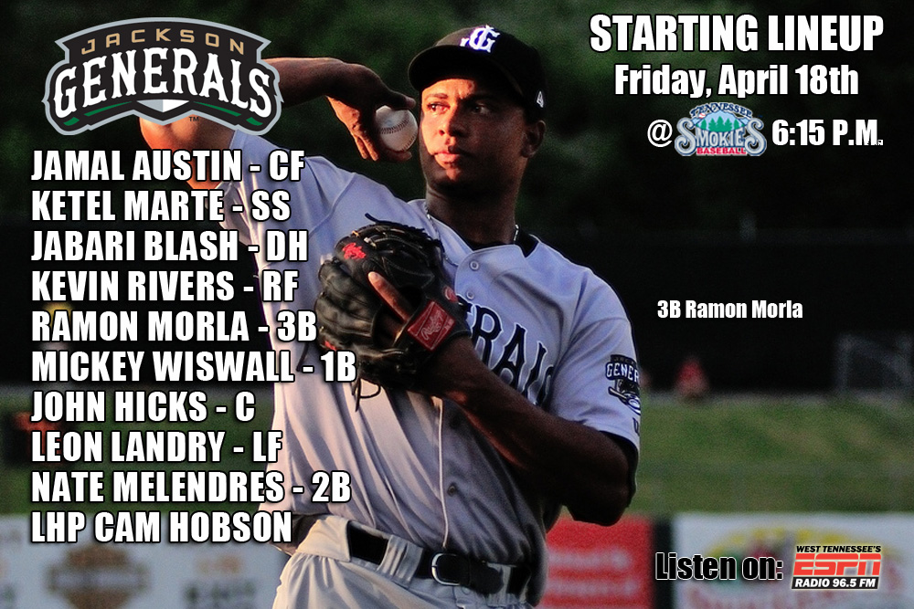 Game #15: Jackson Generals (8-6) at Tennessee Smokies (7-7) | 6:15 pm CT | Smokies Park
