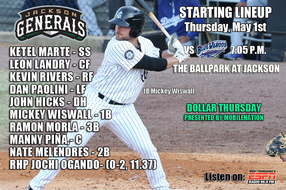 • The Generals host the Pensacola Blue Wahoos for the only time this season, April 30-May 4 at The Ballpark at Jackson.