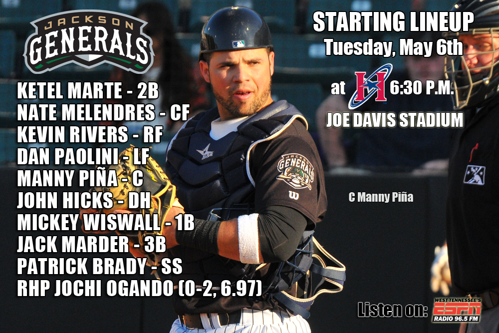 • The game can be heard on 96.5 ESPN, online at jacksongeneralsbaseball.com or TuneIn Radio.