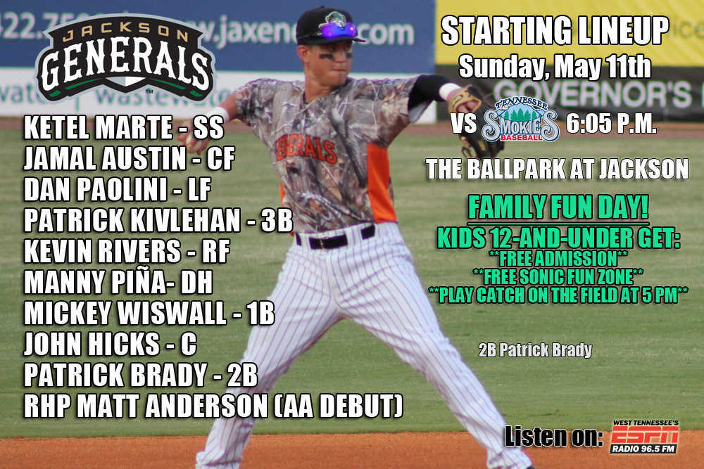 • The game can be heard on 96.5 ESPN, online at jacksongeneralsbaseball.com or TuneIn Radio.