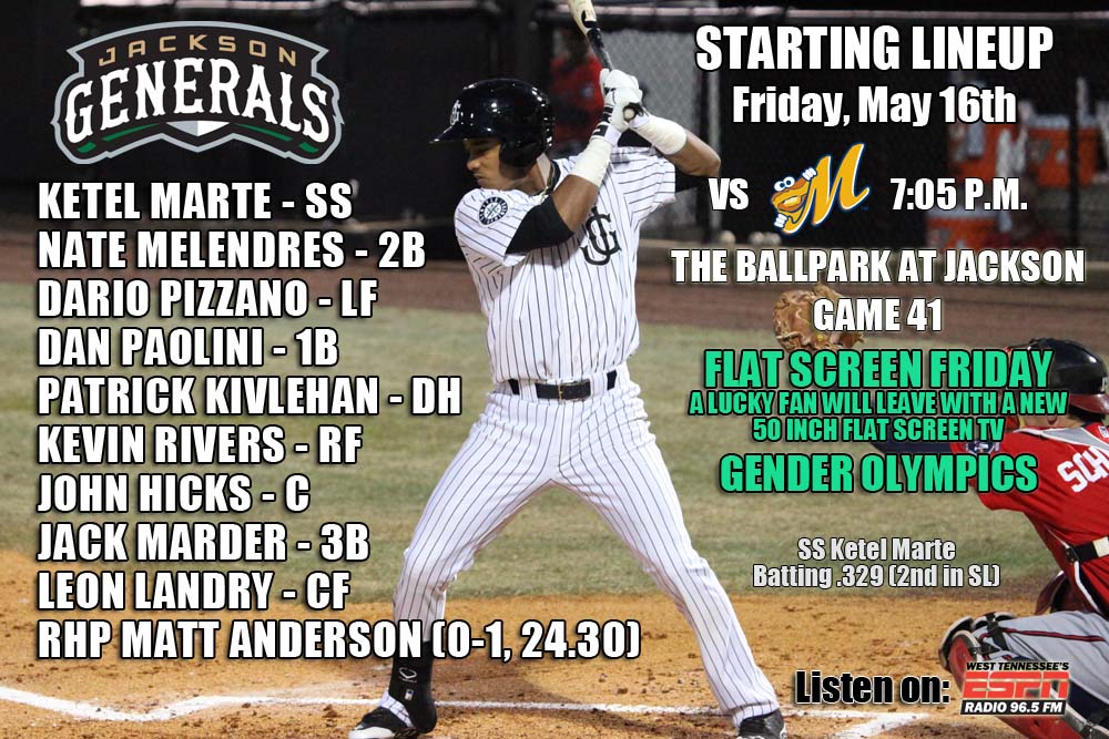• The game can be heard on 96.5 ESPN, online at jacksongeneralsbaseball.com or TuneIn Radio.