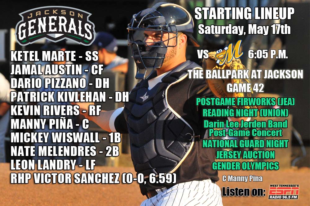 • The game can be heard on 96.5 ESPN, online at jacksongeneralsbaseball.com or TuneIn Radio.